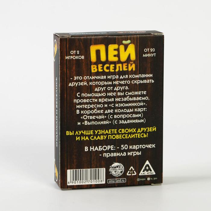 Купить игра для компании "пей веселей" 50 карт от 180 руб. с доставкой до пункта выдачи в Заозёрном. Интернет магазин ДекаМаркет. Оплата при получении.